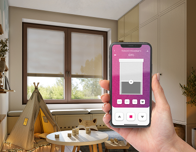 Управляйте внешней солнцезащитой с пульта и через приложение или настройте сценарий автоматического открытия‑закрытия с учетом погодных условий.